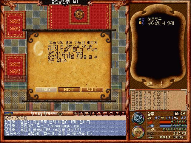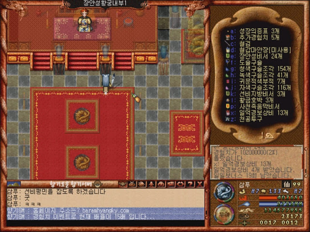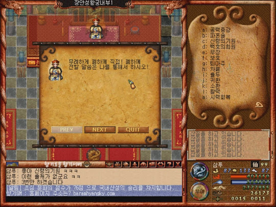 올라가면 비서 상인 엔피시가 있습니다. 원래 구버전 바람의나라에선 없었지만 향기서버엔 있다는 점! 여기서 선비지방비서를 3개정도만 사줍시다